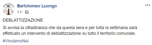 Questo quanto pubblicato sulla pagina facebook del portavoce del Sindaco, Bartolomeo Luongo: