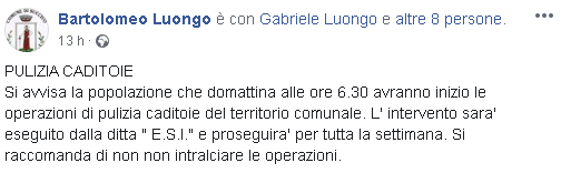 Lo apprendiamo dalla pagina Facebook di Bartolomeo Luongo, Portavoce del Sindaco di Succivo.