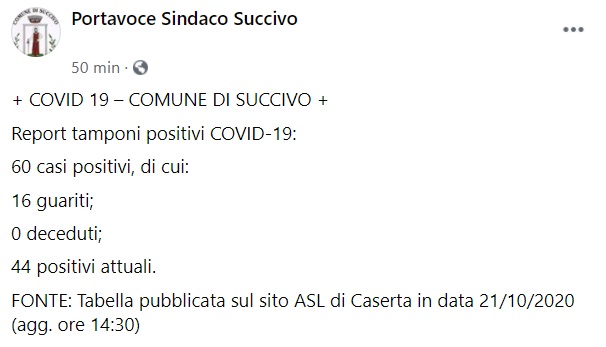 Questo quanto apprendiamo dal profilo facebook del Portavoce del Sindaco: