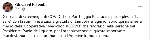 Lo apprendiamo dalla pagina Facebook di Giovanni Palomba, Sindaco di Torre del Greco.