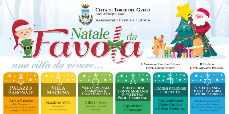 "A due settimane dalla chiusura dell’ampio programma di eventi promosso dall’amministrazione comunale e dall’assessorato alla Cultura di Torre del Greco, è giunto il momento di tracciare il bilancio di “Natale da Favola”. Una kermesse che ha visto andare in scena oltre 60 manifestazioni distribuite su tutto il territorio cittadino, coinvolgendo grandi nomi del firmamento artistico nazionale e soprattutto numerose associazioni locali.-spiega la nota-Fare il punto su come è andata ma anche iniziare a porre le basi per i prossimi eventi che vedranno la città protagonista sotto l’aspetto culturale: con questo intento dunque è stata convocata la conferenza di chiusura della kermesse, conferenza alla quale parteciperanno tra gli altri il sindaco di Torre del Greco, Giovanni Palomba, e-spiega la nota- l’assessore alla Cultura e agli Eventi , Enrico Pensati. L’appuntamento è fissato per mercoledì 22 gennaio 2020 alle ore 15.30 presso l’aula consiliare di Palazzo Baronale.-spiega la nota-Per l’occasione sono state invitate tutte le associazioni che hanno preso parte al ricco cartellone di eventi “Natale da Favola” che per un mese ha allietato le scorse feste dei torresi, con il coinvolgimento anche di diverse persone giunte da fuori città, richiamate dalle proposte culturali realizzate con il sostegno dell’amministrazione comunale."