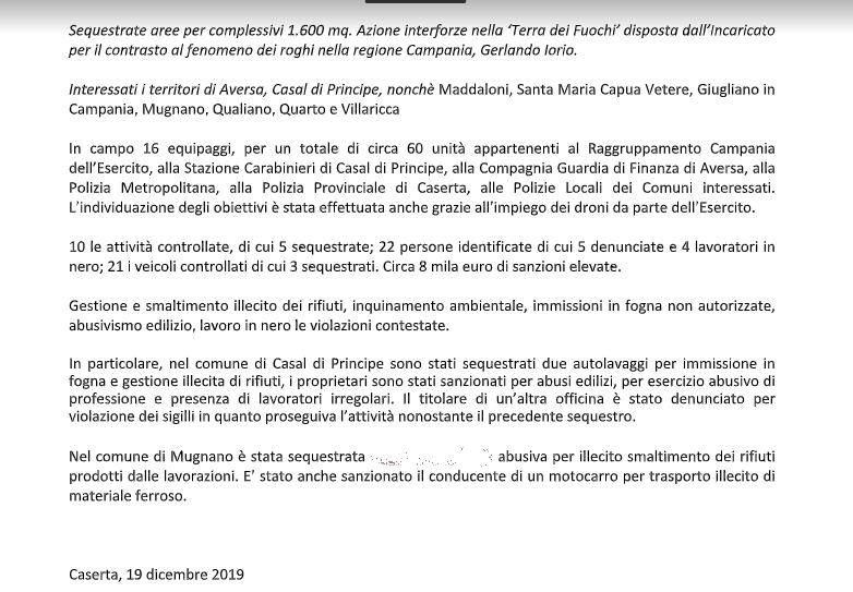 Di seguito, parte del testo del comunicato della Prefettura di Napoli, giunto in redazione.