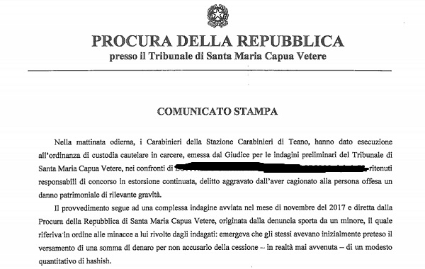 Questo parte del comunicato inviatoci dall'Ufficio della Procura della Repubblica presso il Tribunale di Santa Maria Capua Vetere.