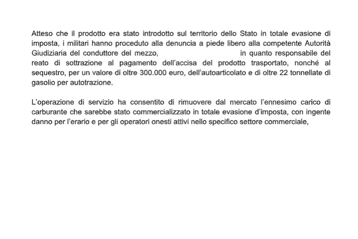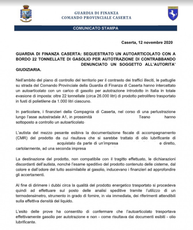Questa parte della nota stampa della Guardia di Finanza di Caserta: