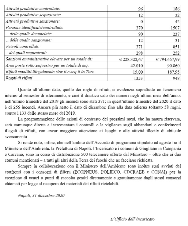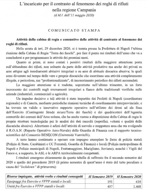 Pubblichiamo nota stampa dell'UFFICIO DELL'INCARICATO PER IL CONTRASTO DEL FENOMENO DEI ROGHI DI RIFIUTI NELLA REGIONE CAMPANIA