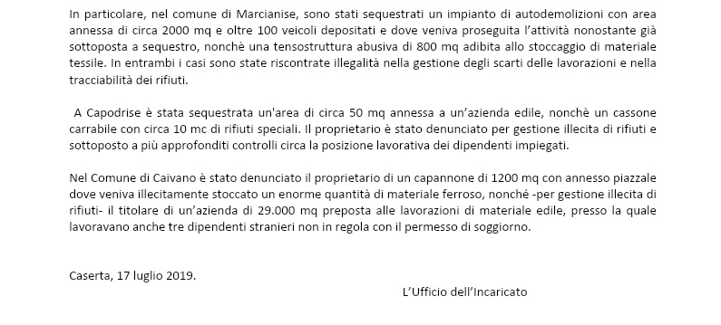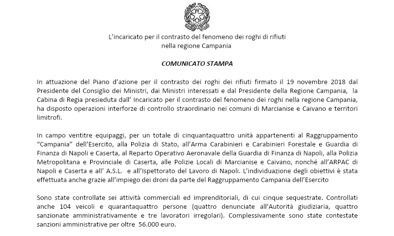 Questo il comunicato inviatoci dall'ufficio dell'Incaricato per il contrasto del fenomeno dei roghi di rifiuti nella Regione Campania.