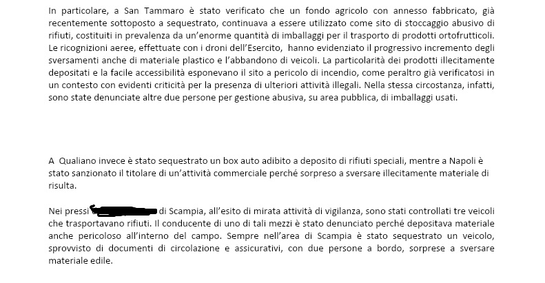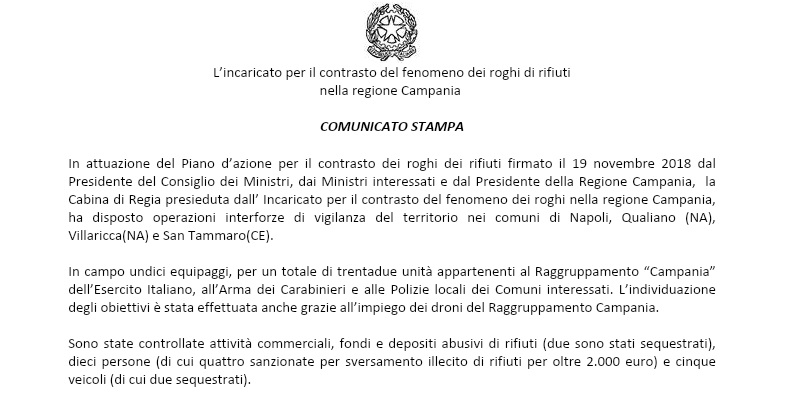 Questo parte del comunicato inviatoci dall'Ufficio dell'incaricato per il contrasto del fenomeno dei roghi di rifiuti nella Regione Campania.