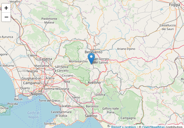 "Un terremoto di magnitudo ML 1.6 è avvenuto nella zona: 1 km S Ceppaloni (BN), il 22-11-2019 14:01:09 (UTC) 8 ore, 42 minuti fa