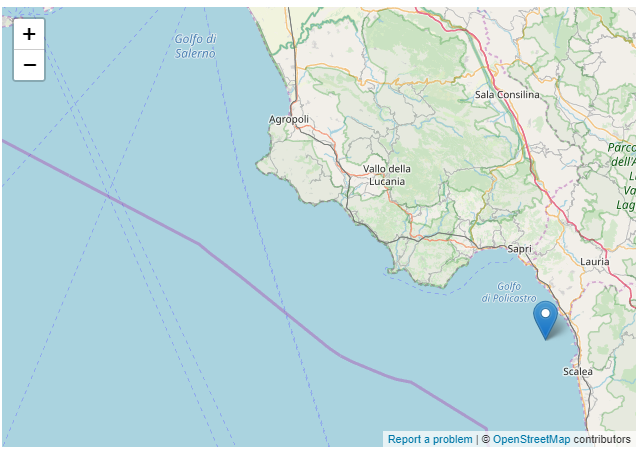 "Un terremoto di magnitudo ML 1.8 è avvenuto nella zona: Golfo di Policastro (Salerno, Potenza), il 19-11-2019 09:48:06 (UTC) 48 minuti, 31 secondi fa