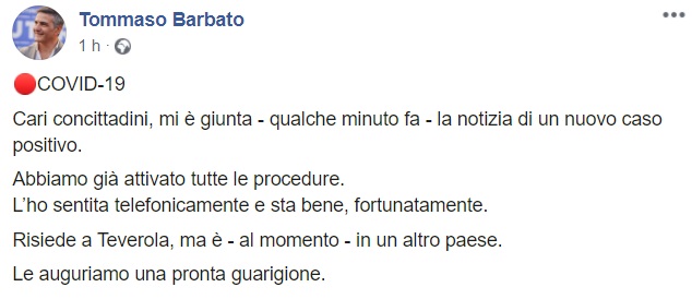 Questo quanto apprendiamo dal profilo facebook del Sindaco Barbato: