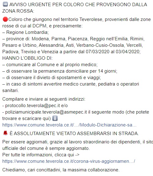 Questo qunato apprendiamo dalla pagina facebook 'Futura per Teverola':