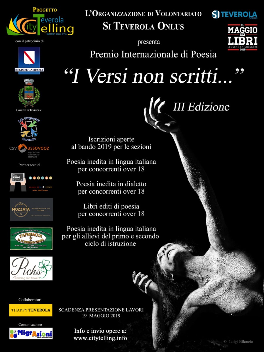 "TEVEROLA – Ai nastri di partenza la nuova edizione del Premio Internazionale di Poesia “I versi non scritti”. Un premio oramai maturo che, quest’anno, giunge alla sua terza edizione e che ha fatto molto parlare di sé, nelle passate edizioni, sia per la notevole adesione (oltre 500 poeti da ogni angolo d’Italia), sia per i livelli qualitativamente alti dei partecipanti.-spiega la nota-Confermato il format vincente delle scorse edizioni che vede gareggiare le poesie in lingua italiana e in dialetto, confermata anche la sezione speciale riservata agli studenti: che troveranno uno spazio per esprimersi e iniziare a proporsi nel pianeta poesia.-si legge nella nota-Una delle finalità del premio, infatti, è quella di valorizzare i talenti; un concorso che mira ad avvicinare i giovani alla cultura, a creare una rete tra poeti ed artisti, tra associazioni e cittadinanza. Un “Premio” che travalica i confini locali e nazionali con il chiaro intento di non escludere nessuno dalla partecipazione.-conclude la nota-Il Premio quest’anno aderisce alla importante campagna nazionale del Maggio dei Libri e per l’occasione crea una nuova sezione a concorso per la Poesia Edita italiana."
