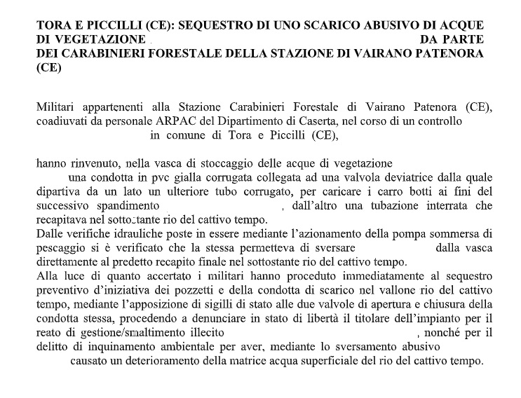 Questo parte del comunicato stampa del Comando Provinciale Carabineiri di Caserta: