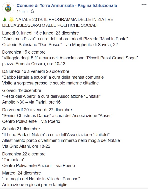 Questo quanto pubblicato sulla pagina Facebook del Comune di Torre Annunziata: