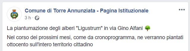 Questo quanto apprendiamo dalla pagina fb del Comune di Torre Annunziata