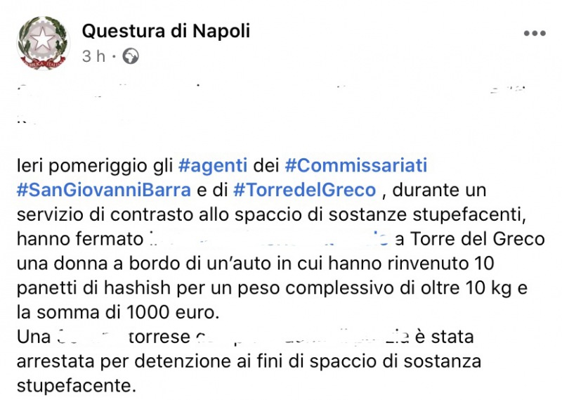 Torre del Greco. "Detenzione a fini di spaccio di sostanza stupefacente"