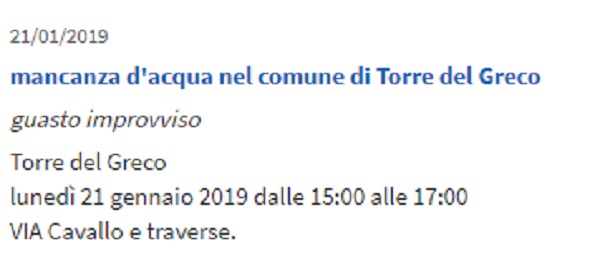 PUBBLICHIAMO L'AVVISO DELLA SOCIETA' CHE SI OCCUPA DELL'EROGAZIONE IDRICA: