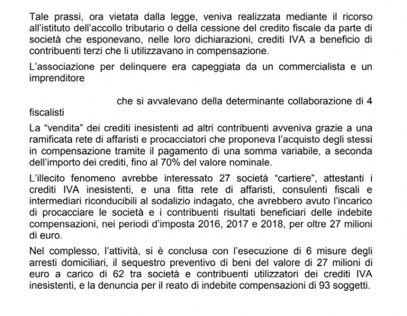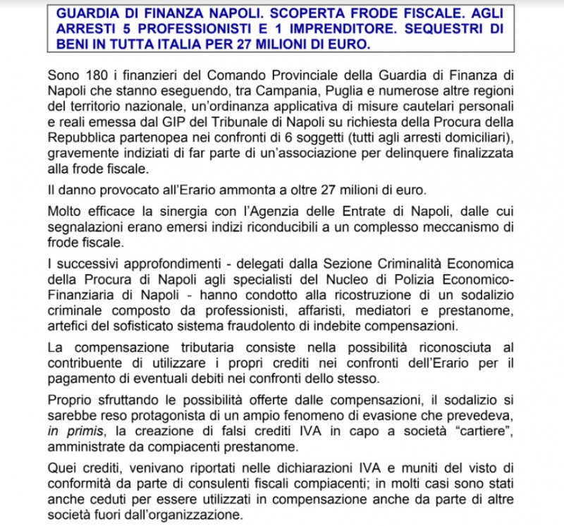 Questa parte della nota stampa della Guardia di Finanza di Napoli: