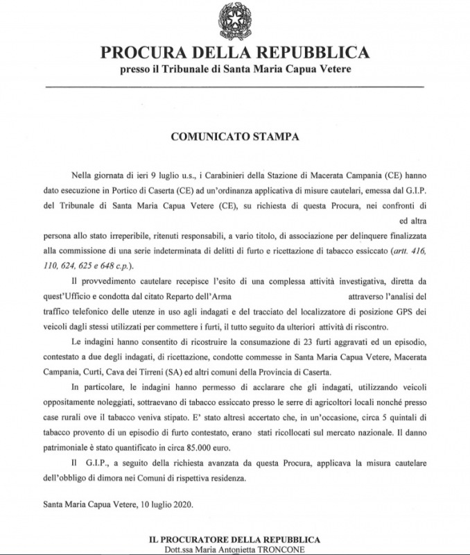 Questa parte della nota stampa della Procura di SMCV: