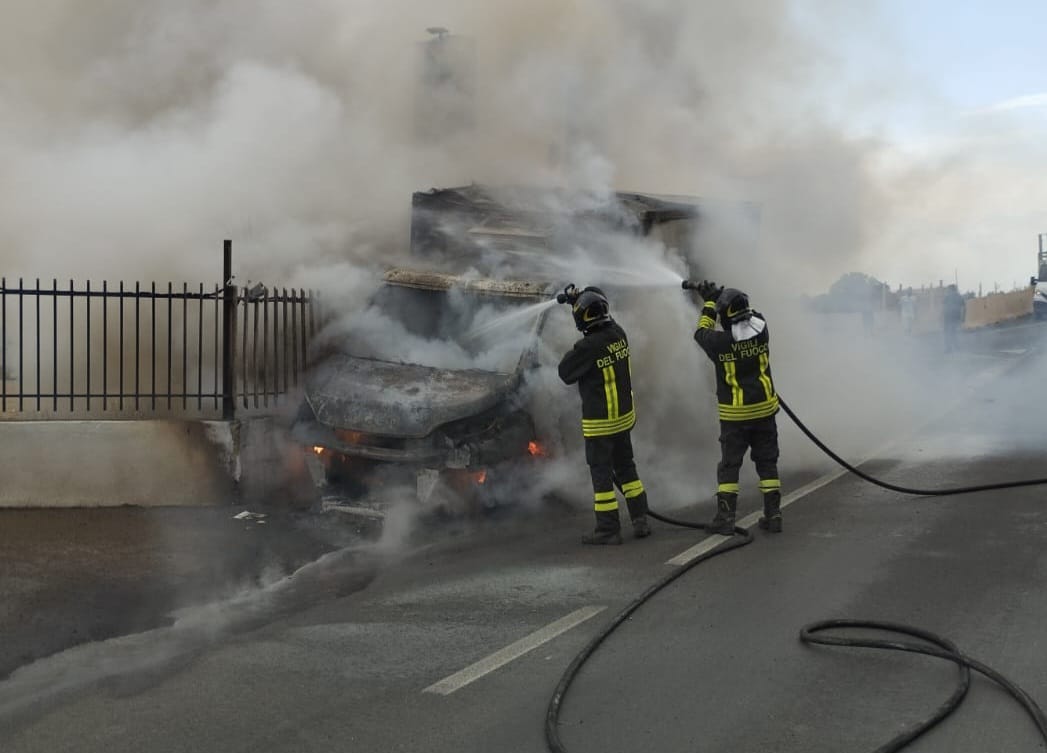 "I Vigili del fuoco del Comando provinciale di Caserta sono intervenuti questa mattina, ... per l'incendio di un furgone con cassone refrigerato avvenuto... tra i comuni di Maddaloni e Santa Maria a Vico. La squadra VVF, con il supporto di un'autobotte, è immediatamente intervenuta sul posto spegnendo- si legge nella nota- l' incendio che aveva totalmente coinvolto il veicolo e parte della vegetazione prospiciente la carreggiata, minacciando pericolosamente anche un'attività commerciale presente vicino. Per le operazioni di soccorso è stato necessario chiudere momentaneamente la strada alla circolazione. Dopo aver spento l'incendio l'intera area è stata messa in sicurezza."