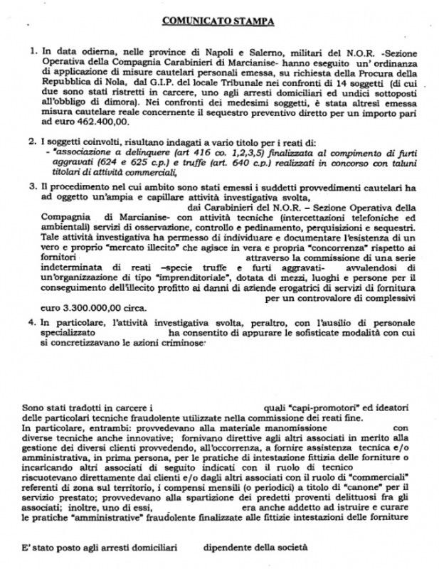 Questa parte della nota stampa del Comando Provinciale Carabinieri di Caserta: