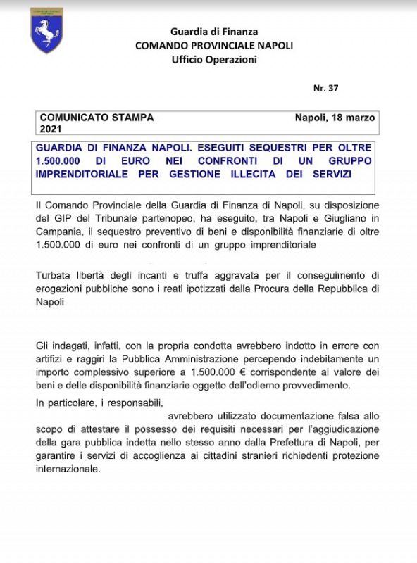 Questa parte della nota stampa della Guardia di Finanza di Napoli:
