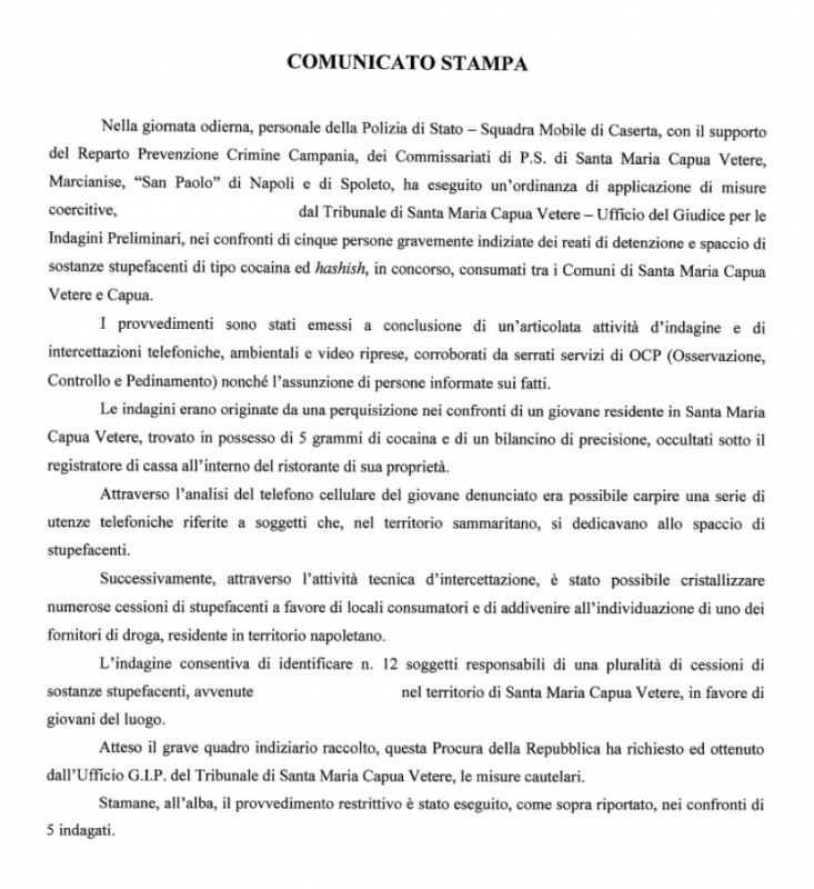Questa parte della nota stampa della Procura di SMCV: