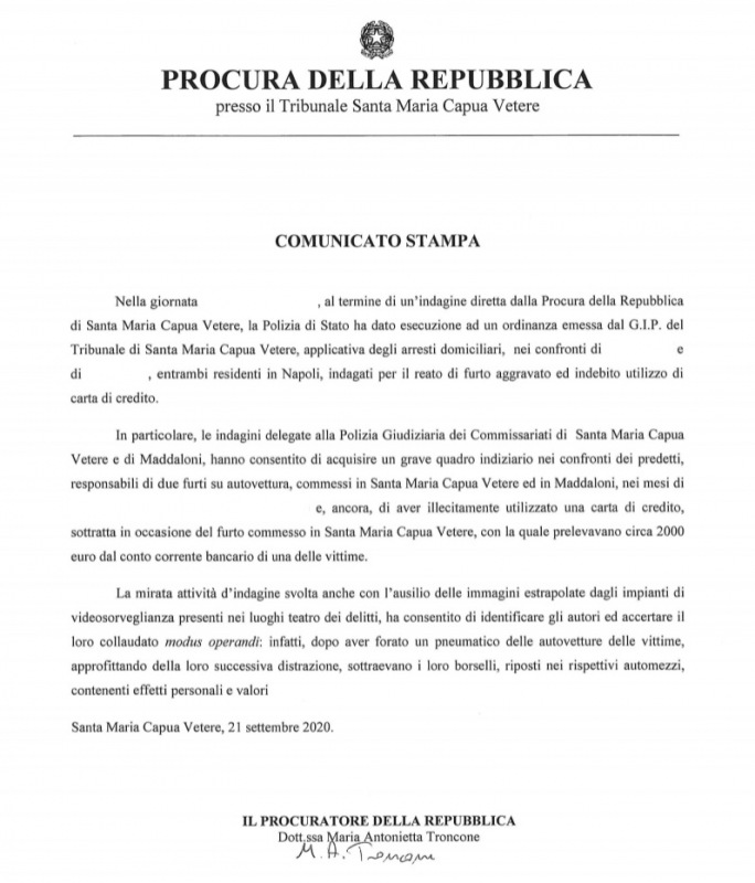 Questa parte della nota stampa della Procura di SMCV: