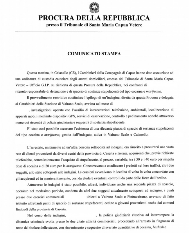 Tra Vairano Scalo, Caianello e Pietravairano. "Detenzione e spaccio di sostanze stupefacenti", un uomo nei guai