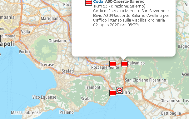 Code a tratti A3 Napoli-Salerno (Km 36.7 - direzione: Salerno). Code a tratti tra Nocera Sud e Vietri sul Mare per traffico intenso (12 luglio 2020 ore 07:56)".