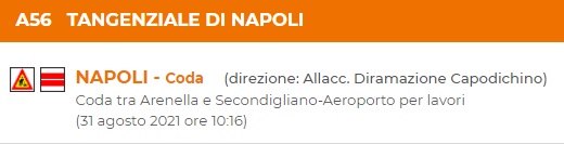 TRAFFICO in Tangenziale. "Coda tra Arenella e Secondigliano-Aeroporto per lavori"