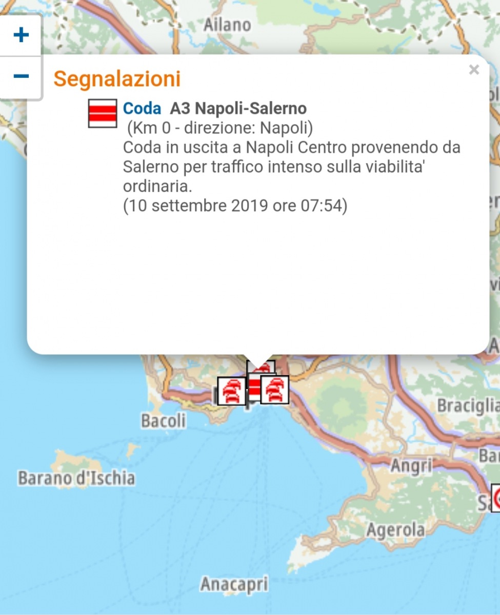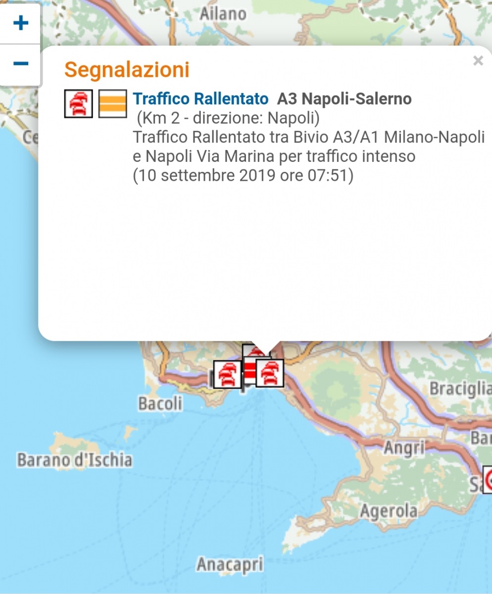 Coda in uscita a Napoli Centro provenendo da Salerno per traffico intenso sulla viabilita' ordinaria.