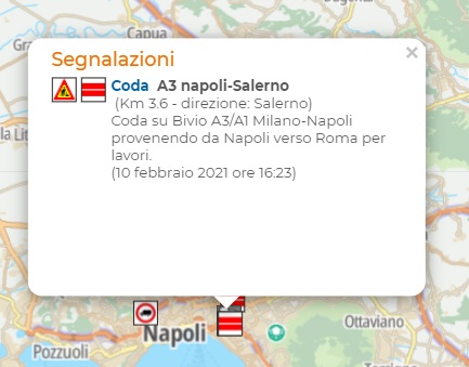"Coda A3 napoli-Salerno (Km 3.6 - direzione: Salerno). Coda su Bivio A3/A1 Milano-Napoli provenendo da Napoli verso Roma per lavori."