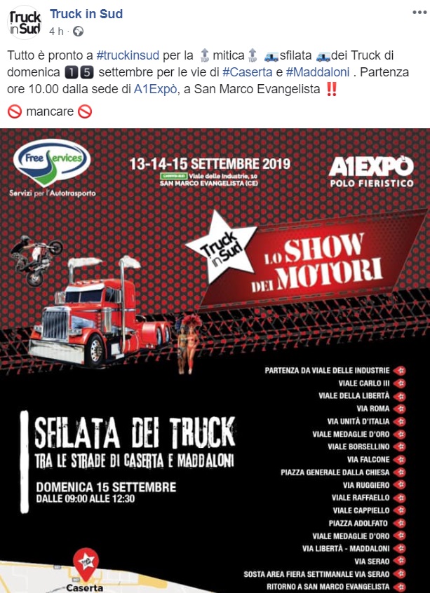 Questo quanto pubblicato sulla pagina Facebook "Truck in Sud":