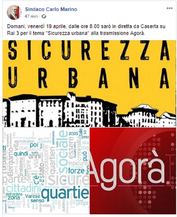 Questo il post pubblicato sulla pagina fb ufficiale del Sindaco di Caserta Carlo Marino