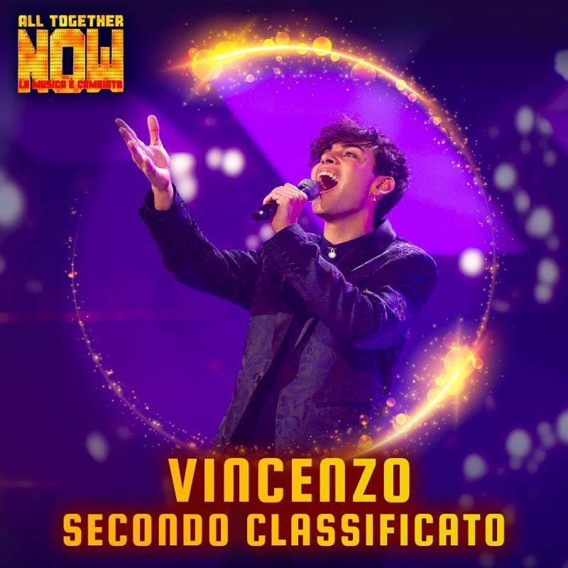 Il giovane artista casertano Vincenzo Cantiello si è classificato secondo nella finale del programma televisioni di Mediaset 'All Together Now'. Questo quanto apprendiamo dalla pagina facebook di Mediaset Infinity: "Vincenzo… bravo, bravo, bravo! In bocca al lupo per il tuo futuro All Together Now"