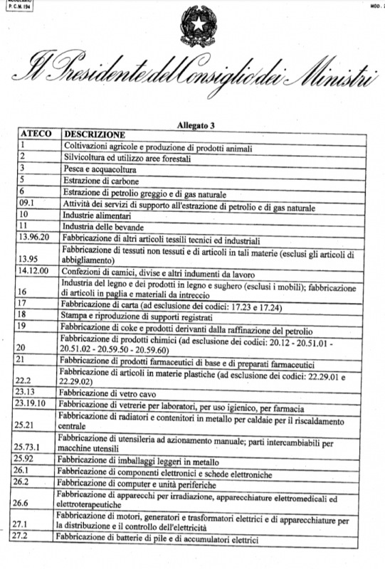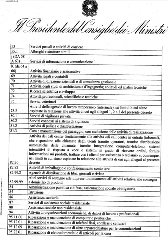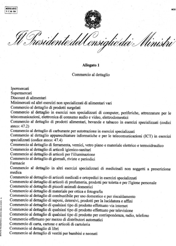 Di seguito, il testo del Decreto del Presidente del Consiglio dei Ministri con l'elenco delle attività che potranno stare aperte a partire dal 14 aprile: