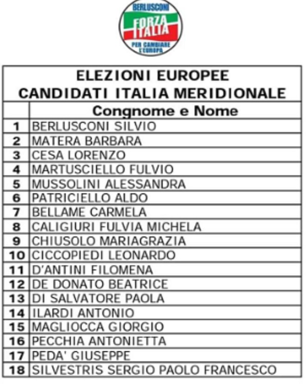 Questa la lista dei candidati di Forza Italia alle elezioni europee.