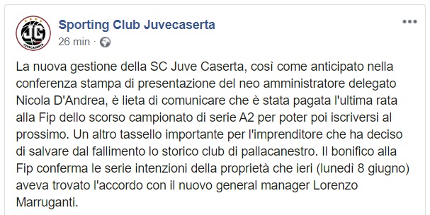 Questo quanto comunicato dalla Juvecaserta