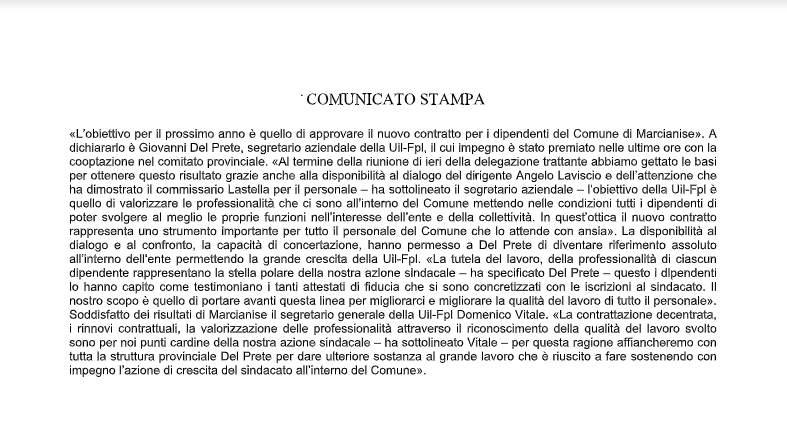 Di seguito, il testo del comunicato della Uil di Marcianise, giunto in redazione.