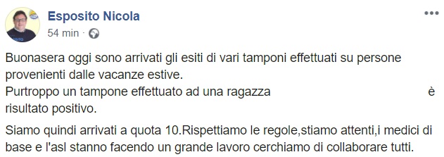 Questo parte di quanto apprendiamo dal profilo facebook del Sindaco di Lusciano Esposito: