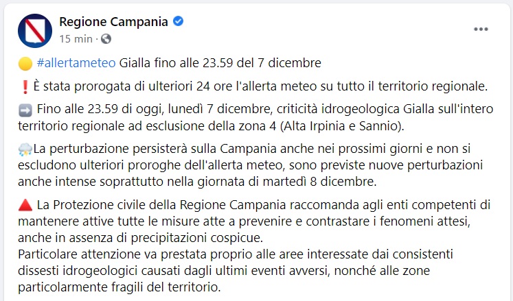 Questo quanto pubblicato sulla pagina fb della Regione Campania