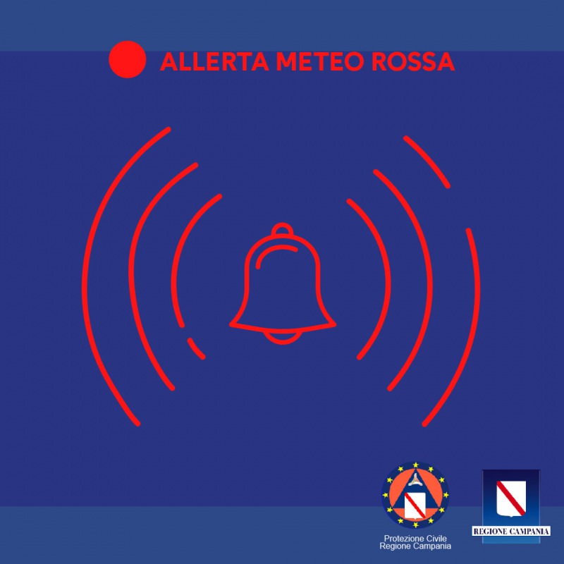 ULTIM'ORA. ALLERTA METEO ROSSA nella Prov. Salerno, Arancione sul resto della Campania