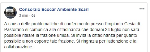 Questo il post pubblicato sulla pagina fb ufficiale di Ecocar.