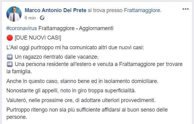 Questo quanto pubblicato dal Sindaco di Frattamaggiore