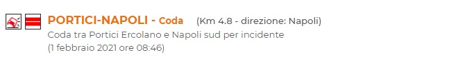 "PORTICI-NAPOLI - Coda (Km 4.8 - direzione: Napoli) Coda tra Portici Ercolano e Napoli sud per incidente"