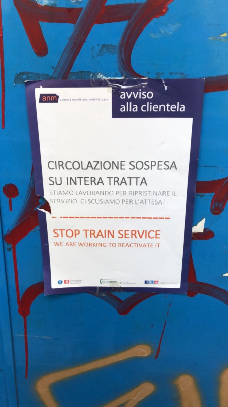 AGGIORNAMENTO: Chiuso il tratto della linea 1 che collega la stazione Toledo con la stazione Garibaldi. Regolarmente aperte le stazioni per la tratta che collega le fermate Dante e Piscinola.