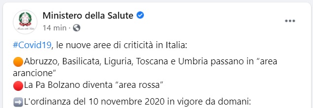 Questo quanto pubblicato sulla pagina fb del Ministero della Salute