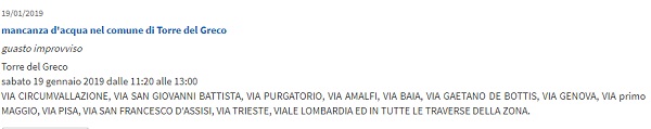PUBBLICHIAMO L'AVVISO DELLA SOCIETA' CHE SI OCCUPA DELL'EROGAZIONE IDRICA: