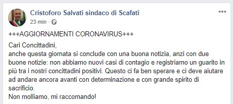 Questo quanto comunicato dal Sindaco di Scafti